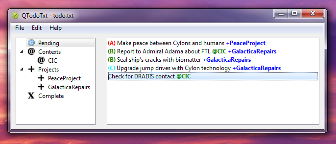 I liked the idea of using a simple text file, but I couldn't find a good editor for this format so I decided to write one. Since I use both Linux and Windows I decided to use PySide (LGPL Qt bindings for Python).